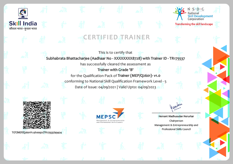 1.Fitness Certification:   Affiliation from SPEFL-SC& Skill India to conduct NSQF (National Skill Qualification farm work) courses for fitness industry.